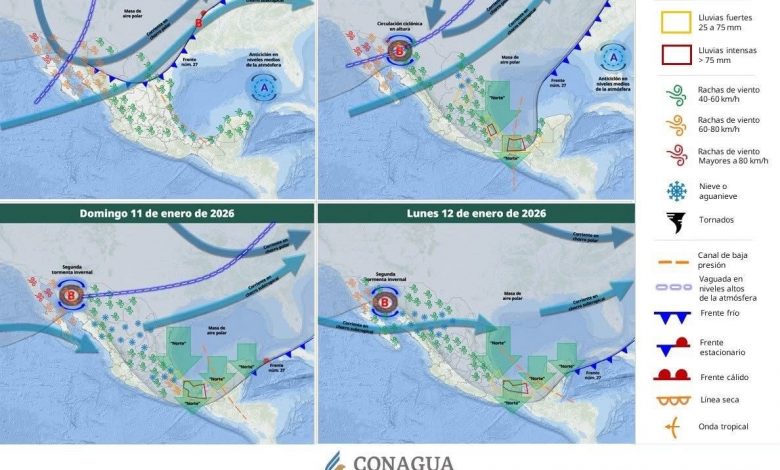 Emiten alerta por lluvias ante Frente Frío No. 27