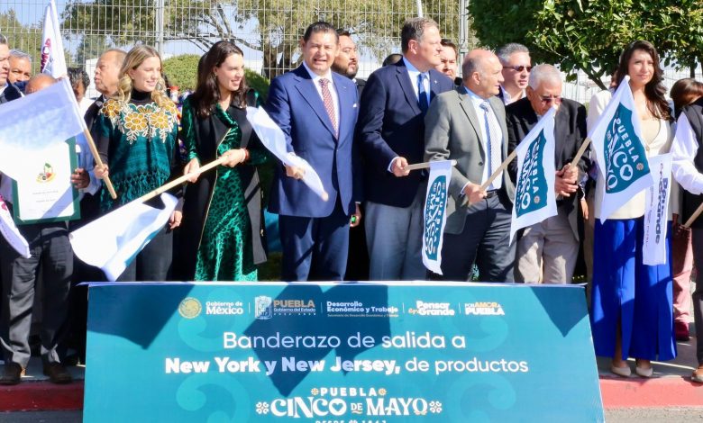 Este primer embarque incluye 14 marcas provenientes de 12 municipios del estado, todas bajo el sello “Puebla Cinco de Mayo”.