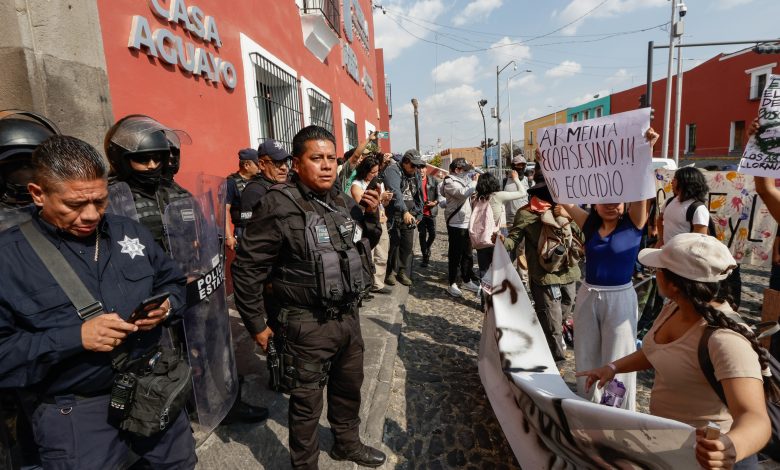 Un grupo de manifestantes que se identificaron como “ambientalistas” irrumpió en el cerco de seguridad de Casa Aguayo, sede del gobierno estatal en Puebla.