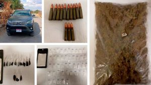 Aseguraron cartuchos útiles, droga y un vehículo con placas de Michoacán
