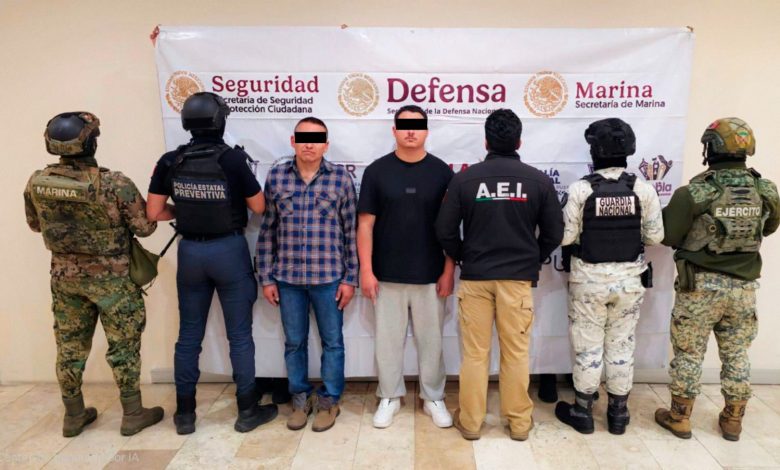 La intervención de la Secretaría de Marina (SEMAR), Secretaría de la Defensa Nacional (DEFENSA), Guardia Nacional (GN), Secretaría de Seguridad Pública Estatal (SSPE) y Fiscalía General del Estado (FGE) permitió detener a Osiel N. de 49 años y Mauricio N., alias “El Caballero”, de 28 años, provenientes del Estado de México y de la Ciudad de México, respectivamente.